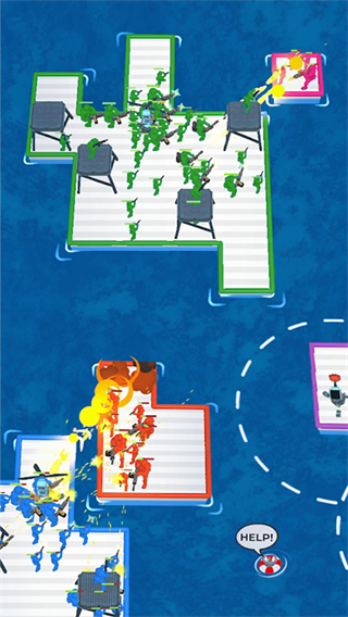 木筏之战是一款主打海上对抗的io类型多人对战作品,参与者需在海上航行,寻找木筏部件来扩大自身领土,同时组建专属团队以击败对手,可选择心仪颜色,利用海洋中漂浮的碎片强化木筏,直接与对手展开正面较量,从救生圈上拿起火柴人能扩充团队规模,让他们成为军队的一部分,船员数量越多,在海战中的生存机会越大。