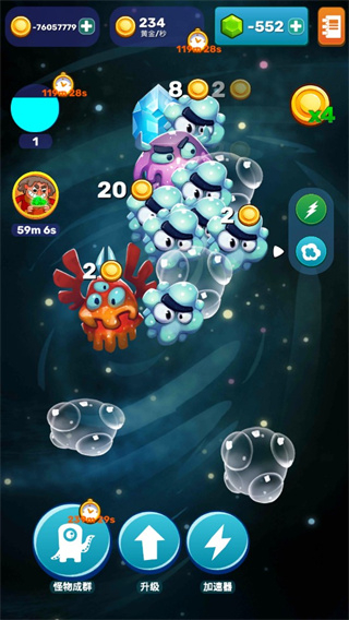 可对已拥有的怪物进行升级,升级后怪物产出金币的效率提升,为后续购买新怪物、继续合成提供资源支撑。
