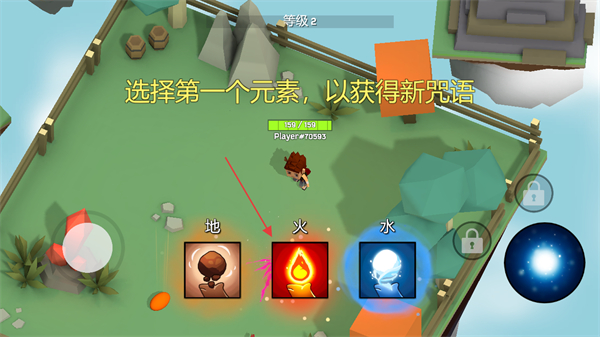 4、完成杀敌任务后,选择元素如地、火、水以获得新咒语,提升角色能力,进入下一级继续挑战。