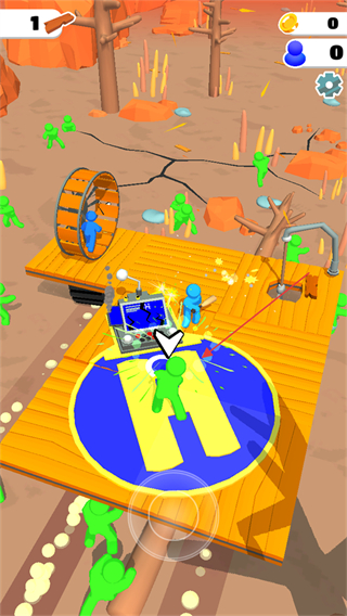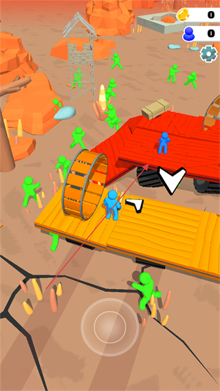 2、让蓝色小人进入转轮装置,使其转动产生动力,推动木筏发展。
