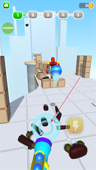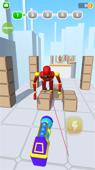 2、调整射击角度,瞄准机器人身体部位,发射攻击,使其出现损伤。