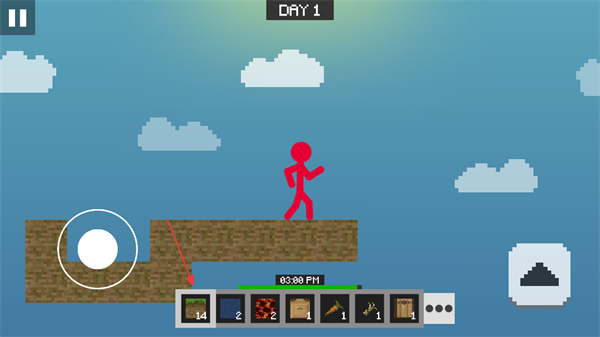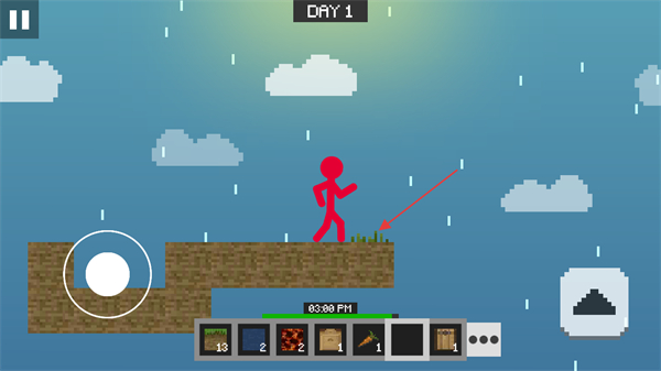 采用经典2D像素风格设计,画面简洁却富有细节,火柴人角色形象鲜明,空岛场景色彩搭配协调,营造出独特的沙盒生存视觉氛围。