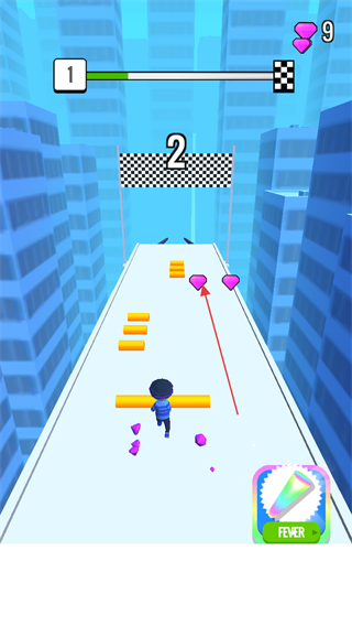 3、持续奔跑,通过不同的跑道区域,挑战更高的关卡数字如2、5等。