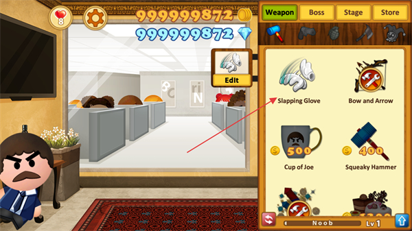3、进入武器界面,选择SlappingGlove等武器,提升攻击效果。