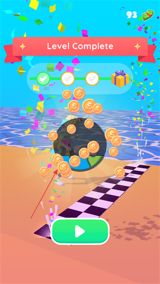 3、到达终点后,收集金币,完成LevelComplete,获取奖励。