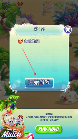 1、进入游戏界面,看到第1关打败蜥蜴提示,点击开始游戏按钮。