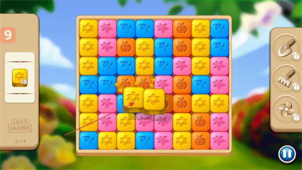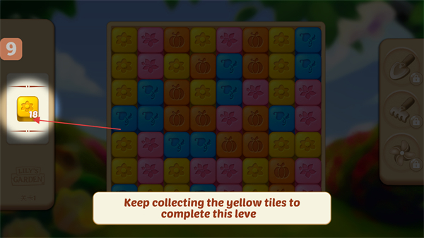 2、查看左侧栏,明确本关需收集18块黄色方块来完成关卡目标。