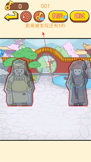 2、倒计时减少到5秒时,保持不动,避免被发现,耐心等待时机。