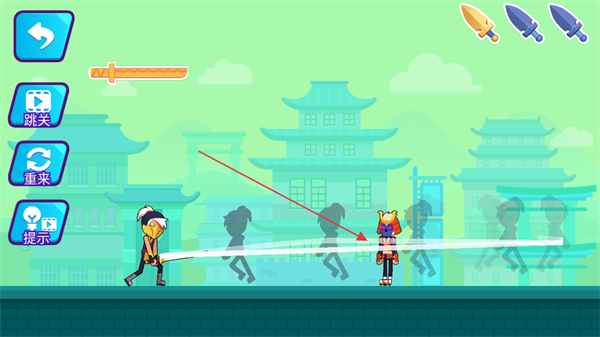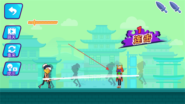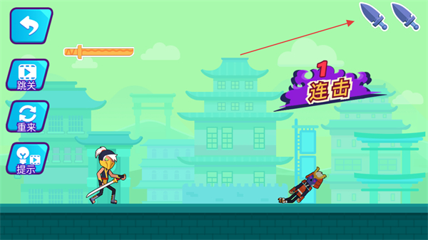 2、留意空中飞来的飞刀道具,点击收集,可用于后续攻击敌人。