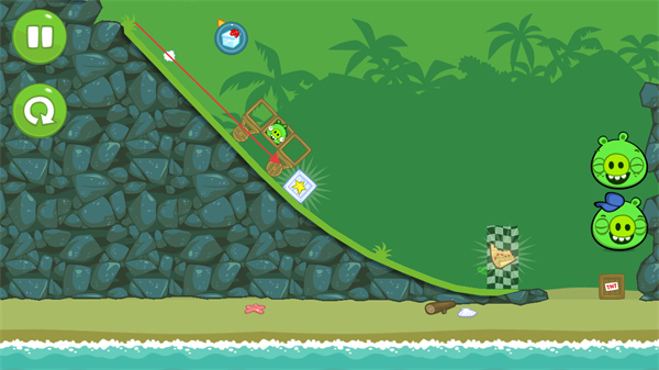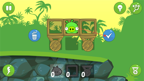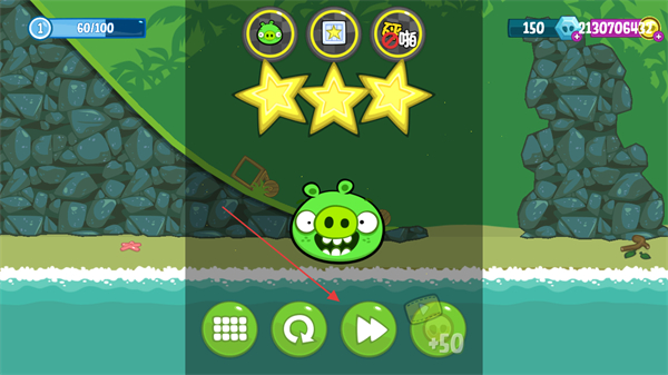 4、成功让猪抵达指定位置,完成关卡,根据表现获得星级评价,点击按钮进入下一关。