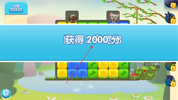 1、进入游戏,明确目标为获得2000分,观察界面中彩色方块分布。