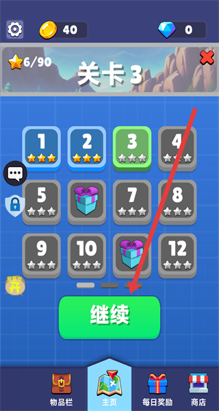 1、在关卡选择界面,点击继续进入“战车超进化”关卡3,准备组装载具。