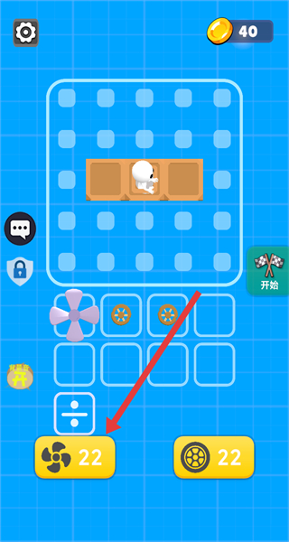 4、添加车轮等其他组件后,点击右侧开始按钮,启动组装好的载具,开始关卡挑战。