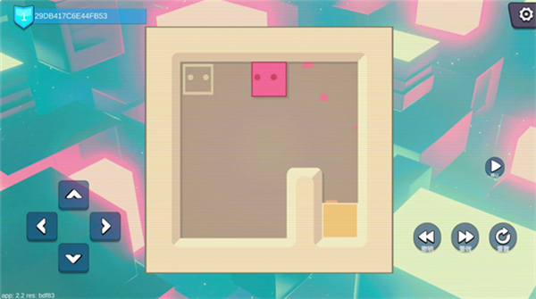 1、观察地图,操控角色移动,靠近粉色方块准备推动。