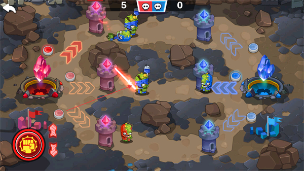 3、点击左侧红色拳头按钮,可释放强力技能,对敌方区域造成大范围伤害,助力己方突破关键防线。