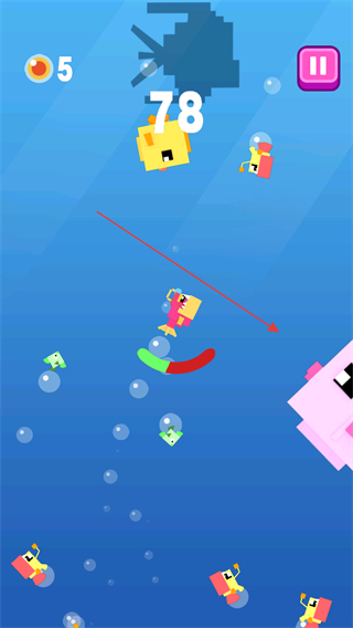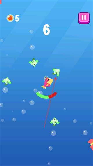 1、操控彩色鱼在蓝色水域中,利用绿色红色弯管装置,躲避绿色小鱼,收集黄色带数字的鱼。