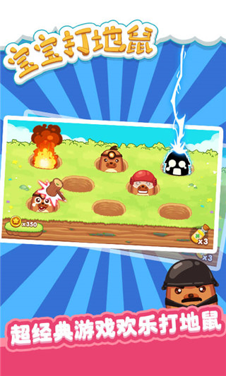 正常地鼠中会随机出现抱炸弹的地鼠,宝宝需快速判断并避开,不能盲目敲击,这种设计增加了游戏难度,也锻炼了宝宝的反应与判断能力。