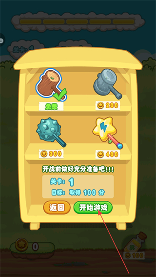 4、使用道具如木椎击中地鼠,可获得更高分数,完成关卡目标。