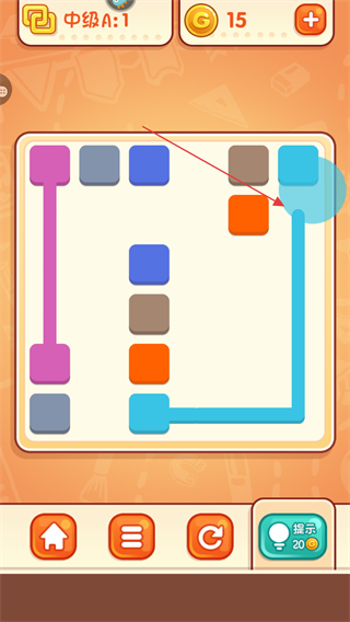 4、若遇困难,点击提示按钮,消耗金币获取连线提示,助力通关。