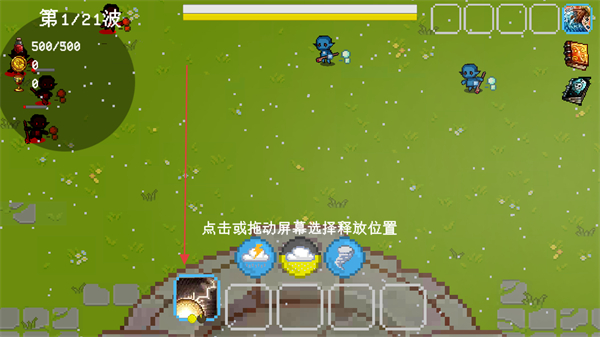 2、点击或拖动屏幕选择释放位置,使用闪电技能攻击敌人。