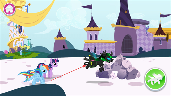 解锁小马谷、水晶帝国、无尽森林等多个动画经典场景,每个场景都有独特的环境设计与任务关联,通关过程中可探索不同区域的奇幻风光,视觉体验丰富。