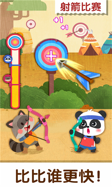 集中精力,瞄准目标,控制方向,发射!箭射中箭靶,篮球落入篮筐,奇奇就能得分啦!篮球和射击,宝宝喜欢哪个呢项目?宝宝快来挑选一个,帮助奇奇获得胜利吧!