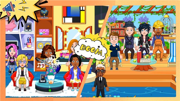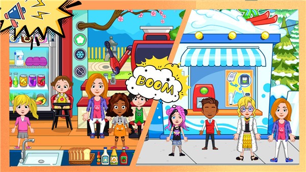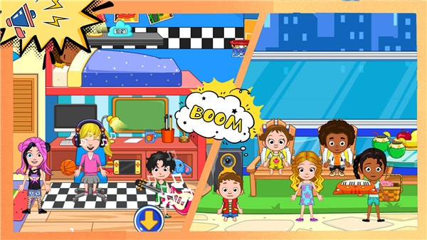 街道有8个好玩的位置,街道的一切都富有想象力,让你爱不释手!它就像一块自由的画布,孩子们每次游戏都可以在上面创造新游戏和故事。可单独游戏,亦可与家长和好朋友一起玩,可带给小朋友们无尽的想象乐趣!与猫咪、狗狗、鸟儿和仓鼠一起玩耍,认养一只狗狗,将其打扮一番以及发现所有隐藏地点及热点。玩遥控玩具、打开沙发彻夜狂欢,寻找男孩房间的隐藏抽屉。