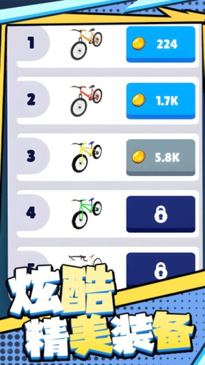 3、车辆性能强化与角色养成是提升竞技水平的关键环节,通过完成各类挑战任务获取资源,对自行车进行部件升级与属性改造。
