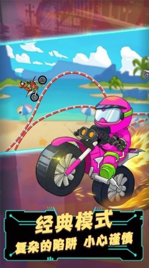 3、极限运动主题展现刺激的飙车文化,通过特技动作与危险挑战传递激情感受,每次完美飞跃都能获得成就反馈。