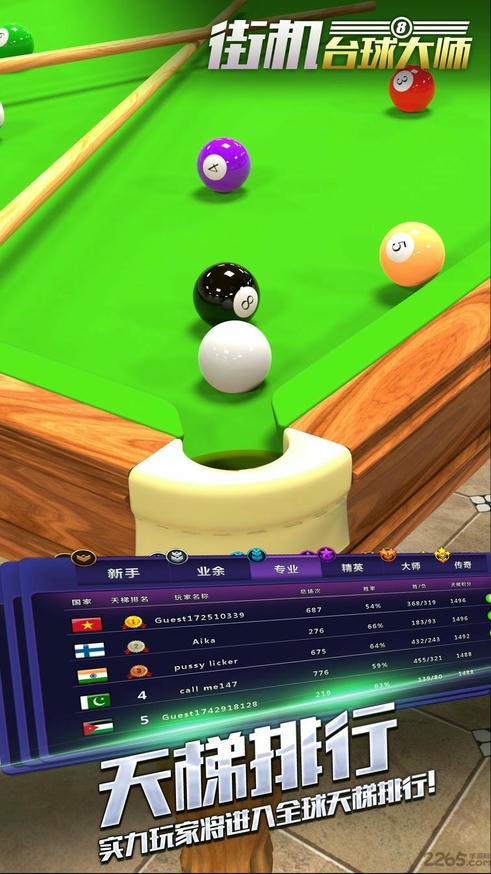 九游街机台球大师是一个体育竞技类手游,完美还原真实台球体验。游戏包含经典8球玩法,支持全球真人实时对战。拥有超过40款精致球杆选择,3D画面效果逼真。提供单机练习和多种赛事模式,适合台球爱好者切磋技艺。