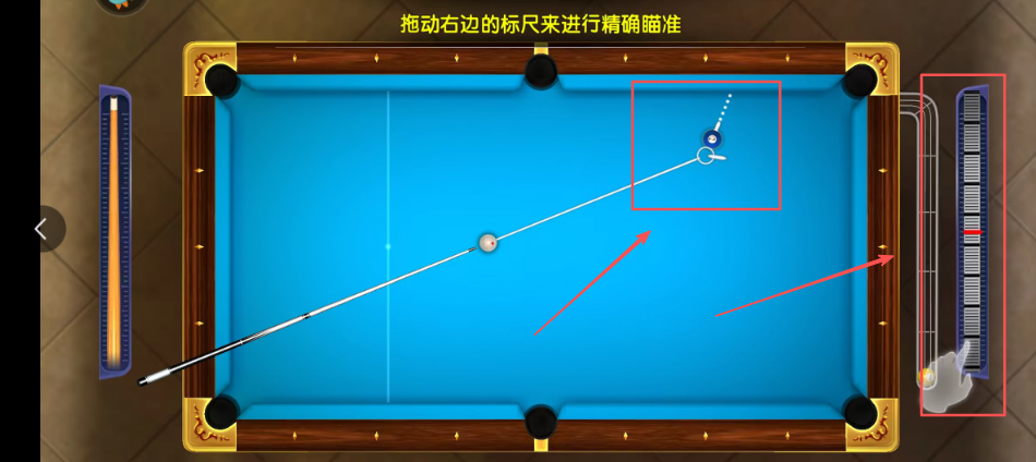 2、长按屏幕调整击球角度和方向,瞄准目标球位置和击球点,掌握角度控制和瞄准技巧,提高击球准确性和成功率。