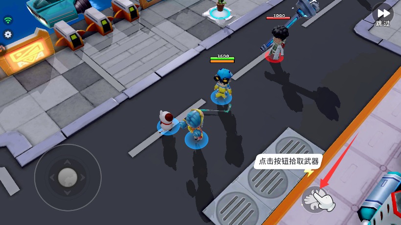 2、靠近地面武器时点击拾取功能按钮,将各类趣味道具装备至角色手中使用。