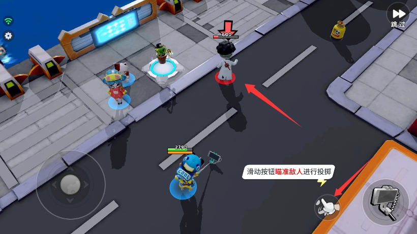 4、当敌人试图逃离战斗范围区域时,滑动按钮瞄准目标进行远程投掷精准攻击。