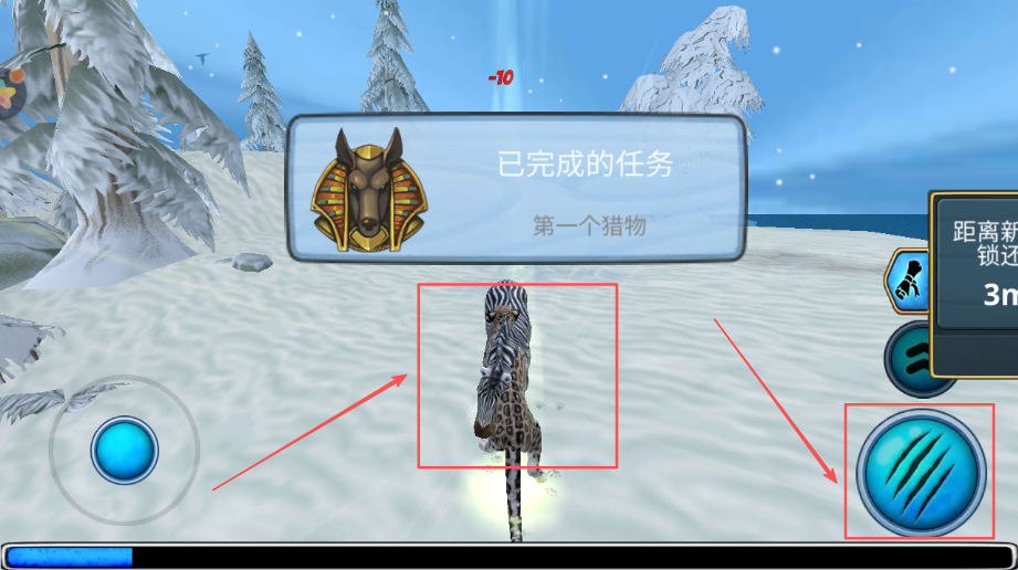3、狩猎模式捕捉猎物锻炼捕食技巧能力,掌握潜伏突袭和追击方法,提高狩猎成功率和效率,优化食物来源和营养供给,确保生存质量。