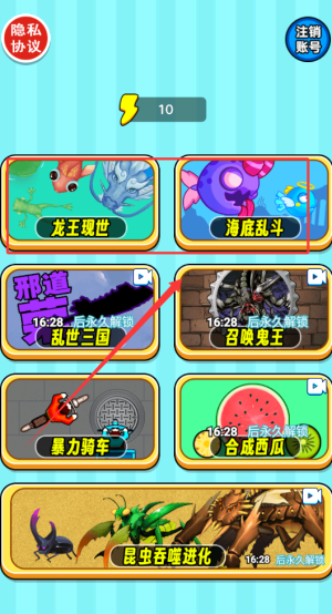 1、初始选择各类基础生物形态,包括常见的水生生物与两栖生物等,通过持续吞噬更小体型的生物获取进化能量。
