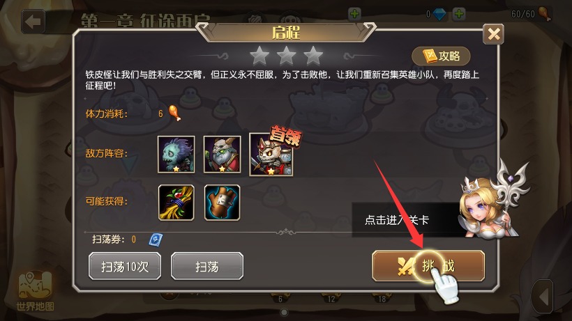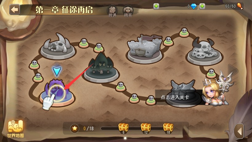 2、在第一章地图中选择具体关卡进入,每个关卡都有独特的敌人阵容与挑战。