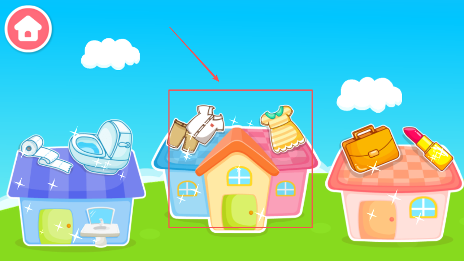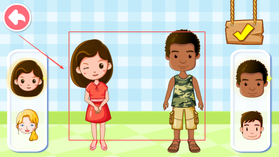1、进入游戏选择学习场景,根据语音提示开始认识男女基本特征差异,通过生动形象的画面展示性别特征。