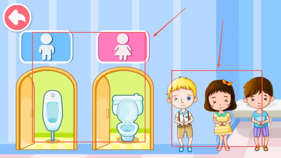 3、完成卫生间标识识别任务,学习正确区分和使用男女卫生间,培养良好的生活习惯和社会规范意识。