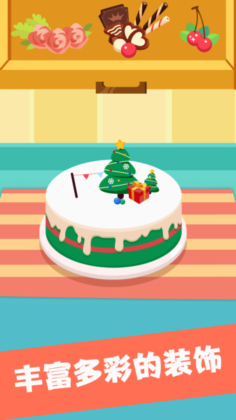 2、使用各种装饰材料进行创意发挥设计,通过直观的拖拽操作添加奶油、水果和糖果等配料完成个性化蛋糕造型创作。