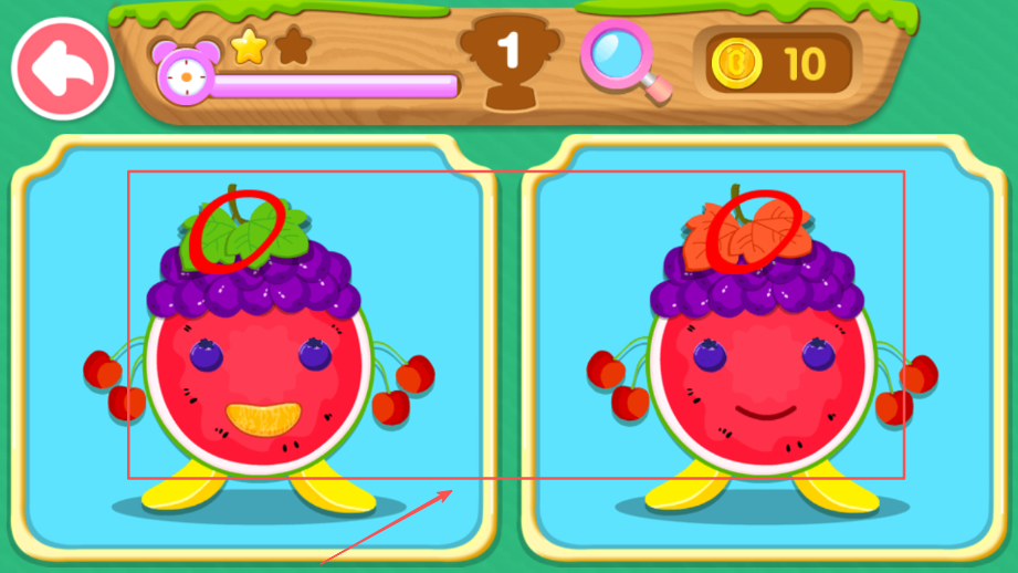 2、通过对比分析找出图片中的不同之处,使用手指点击差异位置进行标记确认,系统会给予即时反馈和鼓励提示以及正确标识。