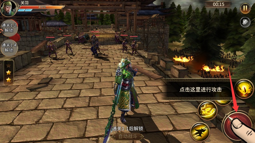 3、点击右下角按钮发动普通攻击连招,对前方敌人造成持续稳定的物理伤害。