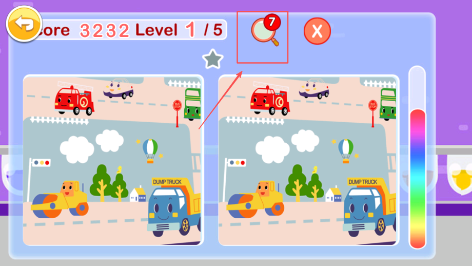 4、贴心设计实用道具功能,放大镜工具帮助孩子克服寻找困难,同时培养孩子解决问题的思维能力,在游戏中获得成长和进步。