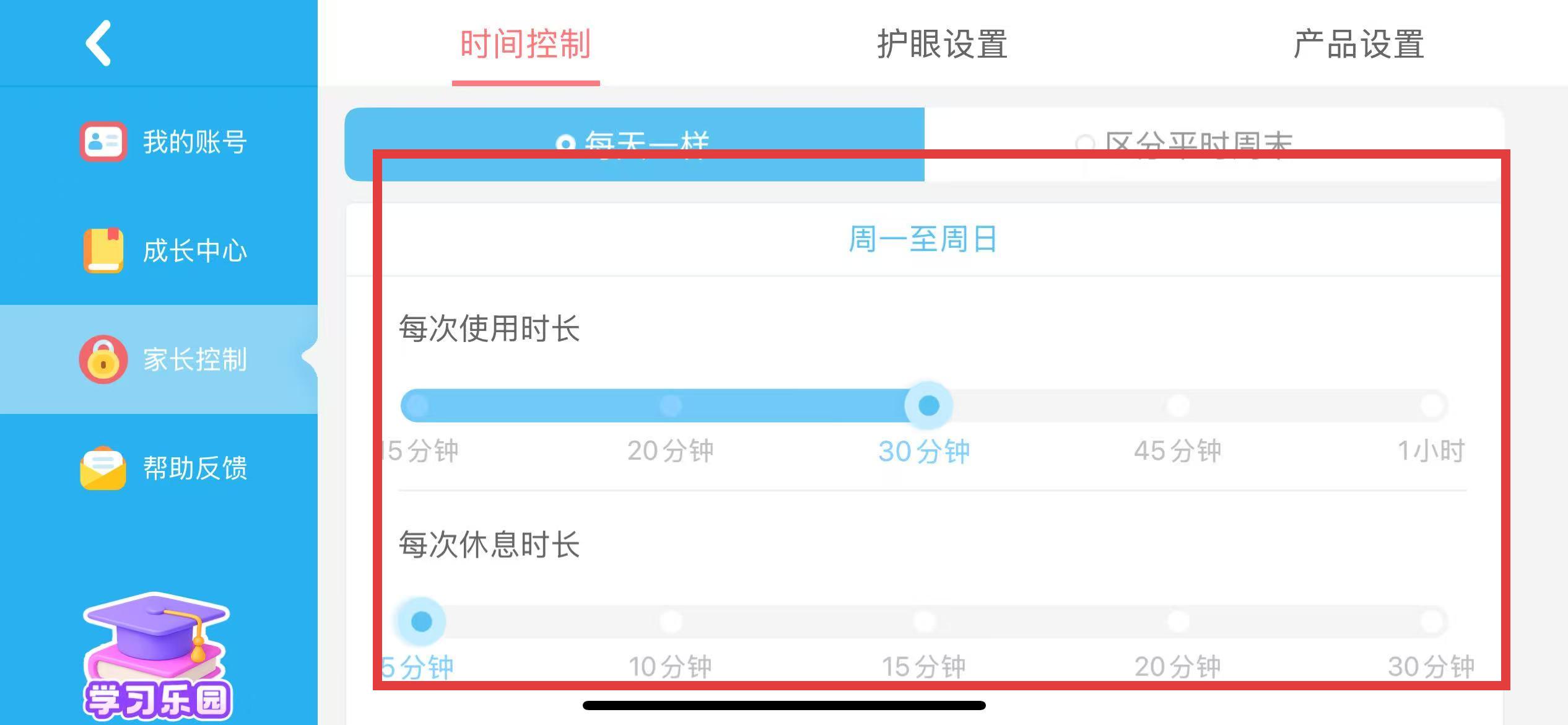 4、根据需要调整使用时长即可。