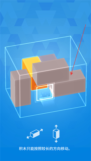 以三维空间为舞台,砖块需沿固定方向移动,核心是规划移动顺序与路径,通过空间思维组建合理图案,助力核心方块突破阻碍抵达出口。