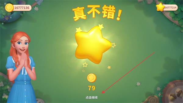 4、完成关卡目标后,获得奖励,点击点击继续进入下一个环节。