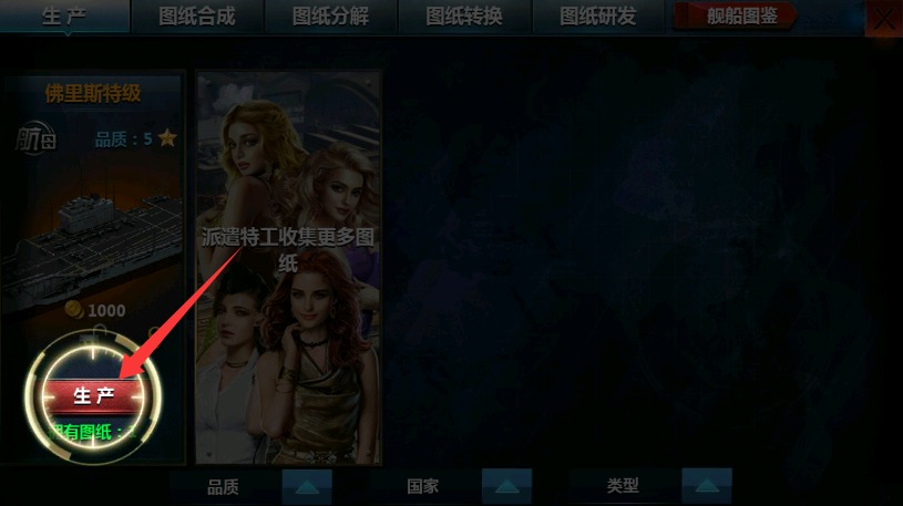 4、选择需要生产的舰船型号后点击确认生产,等待建造完成后即可带领加入战斗。