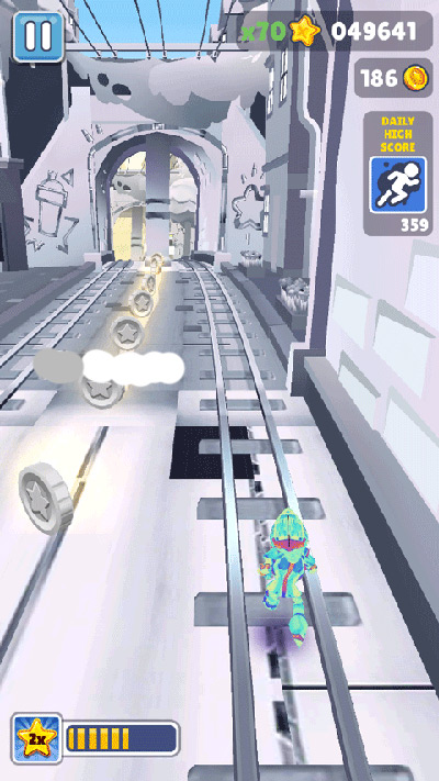 道路变换时需要预判2-3个障碍物后的路线,该版本优化了轨道切换的判定范围,在障碍物前1.5个身位开始操作最为安全。特别注意金色轨道区域,这里不仅金币密集,还会周期性出现加速带,合理利用可以大幅提升得分效率。