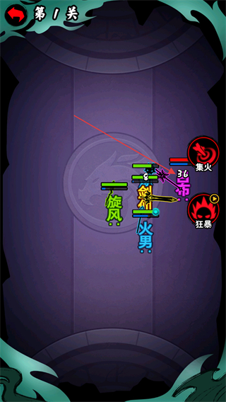 3、触发技能特效,包裹敌方文字完成击败,推进关卡胜利进度。