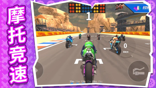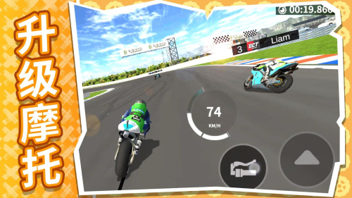 3、画面表现力出色赛道环境细节丰富,角色和摩托车建模精致细腻,搭配动态光影效果营造沉浸式竞速体验,同时优化资源占用保证多数设备流畅运行。
