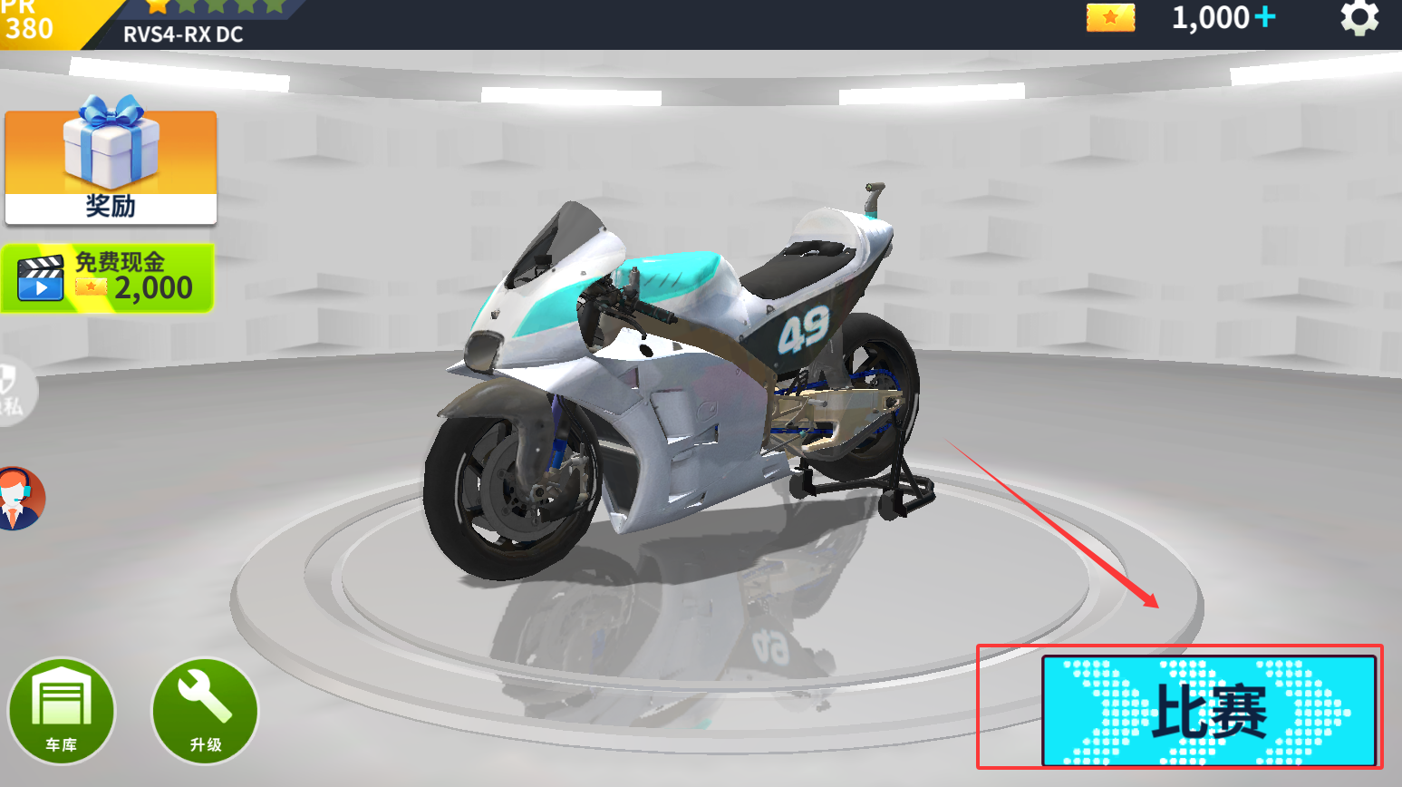 3、积累足够金币后考虑购买性能更优的摩托车,需要根据关卡难度和自身技术合理选择,购买后前往改装车间进行强化升级。
